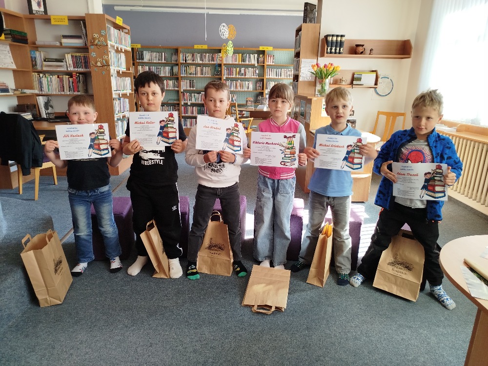 Ve středu 14. května byli naši prvňáčci pasováni na čtenáře v místní knihovně. Nejdříve však museli podstoupit zkoušku – předvést, jak umí číst. Také museli ukázat, že znají klasické české pohádky a večerníčky. Potom teprve přišlo samotné pasování na „rytíře“ a děti tak byly přijaty do řádu čtenářského. Z knihovny si odnesly pamětní list a novou knížku, nechyběly ani záložky. Přejeme dětem, aby je čtení provázelo nejen ve škole a věříme, že budou navštěvovat rusavskou či jinou knihovnu, kde na ně čeká spousta krásných knih.