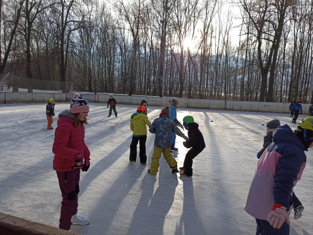 Na pátek hlásili velký mráz, ale my jsme se minusových hodnot na teploměru nezalekli a vyrazili jsme s žáky do Chomýže na led. A led si užili i ti, co neměli brusle. Všichni byli vybaveni teplým oblečením i teplými nápoji a sportovní dopoledne nám rychle uběhlo.