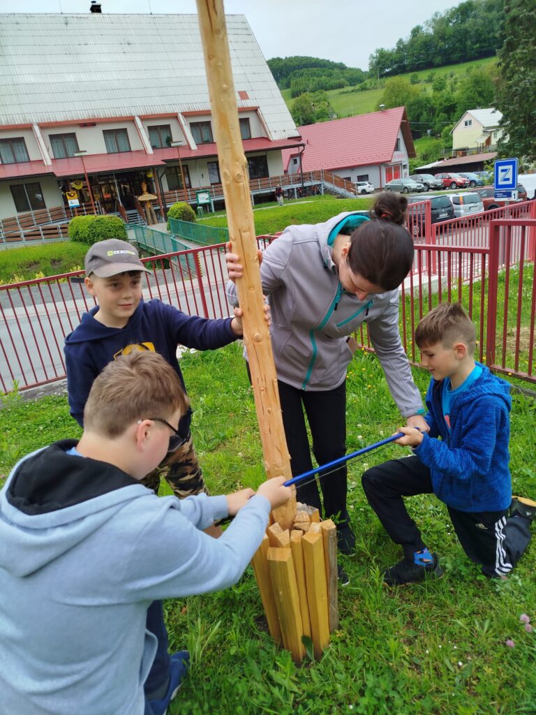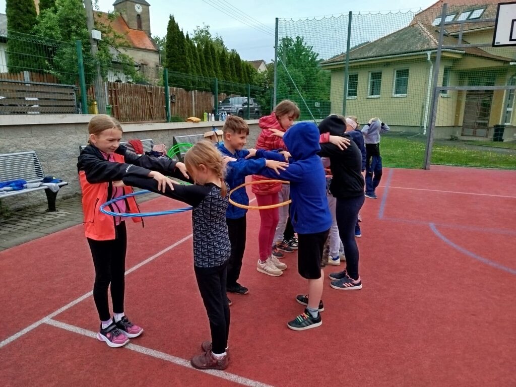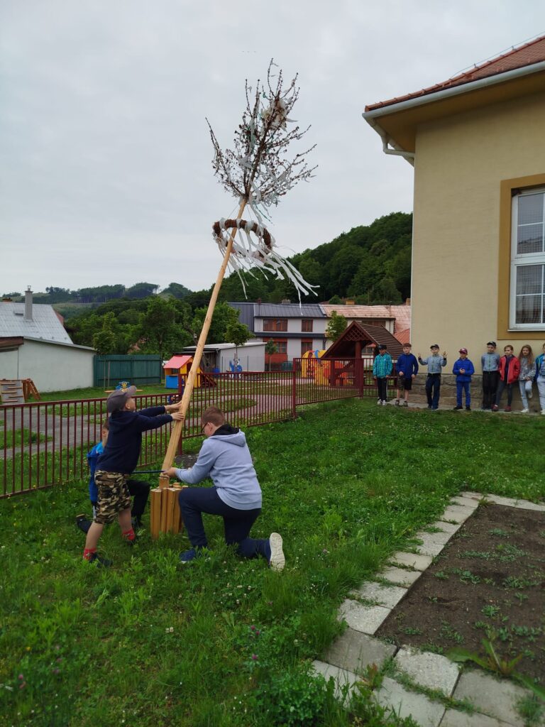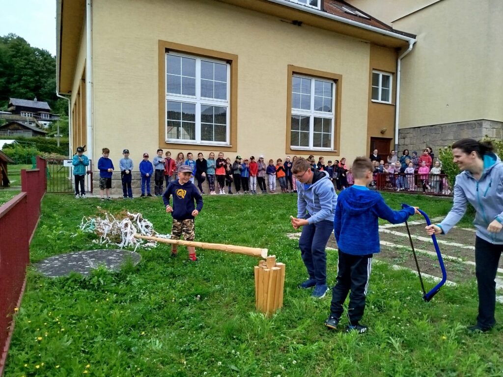 V pátek 30. května jsme spojili projekt s dětským dnem. V rámci projektu Návrat k tradici jsme před školou pokáceli májku. Ještě než májka spadla, zhlédli jsme představení dětí z mateřské i základní školy, které si připravili v kroužku Valášek. Další program již probíhal ve sportovním duchu na školním hřišti. Žáci utvořili dvě družstva a sbírali body v různých disciplínách. Na závěr všichni dostali odměnu.