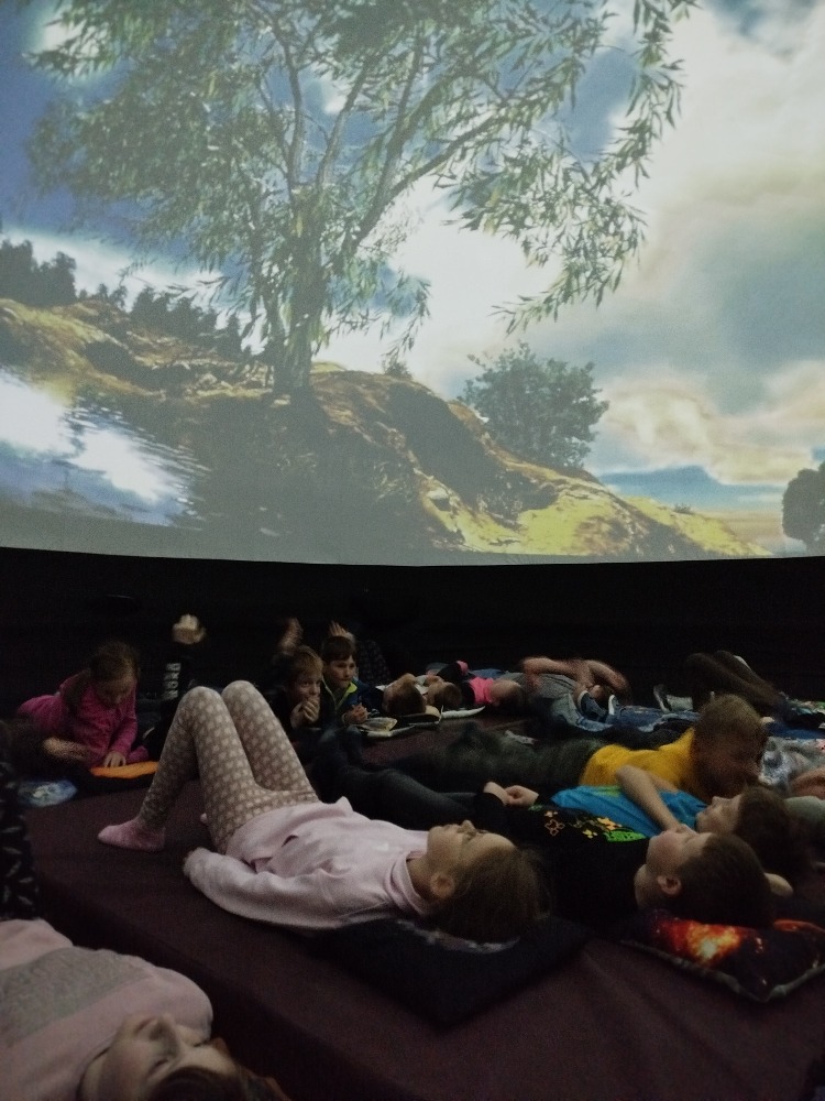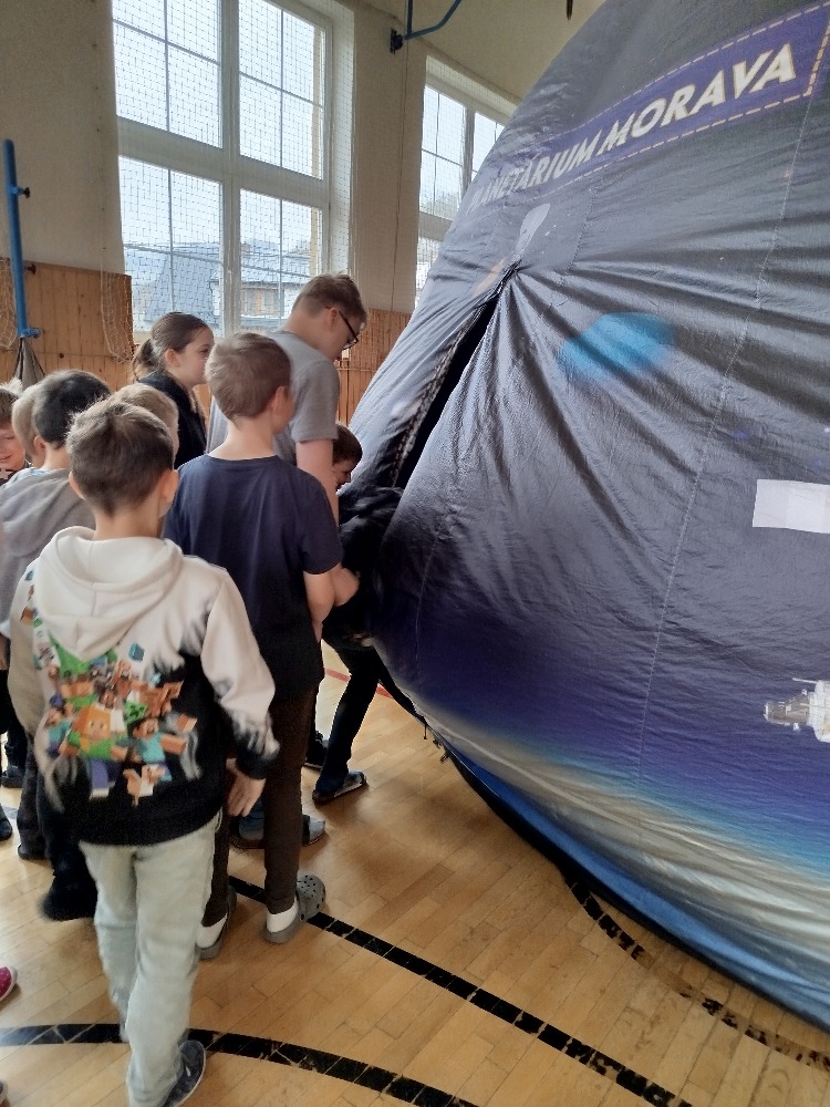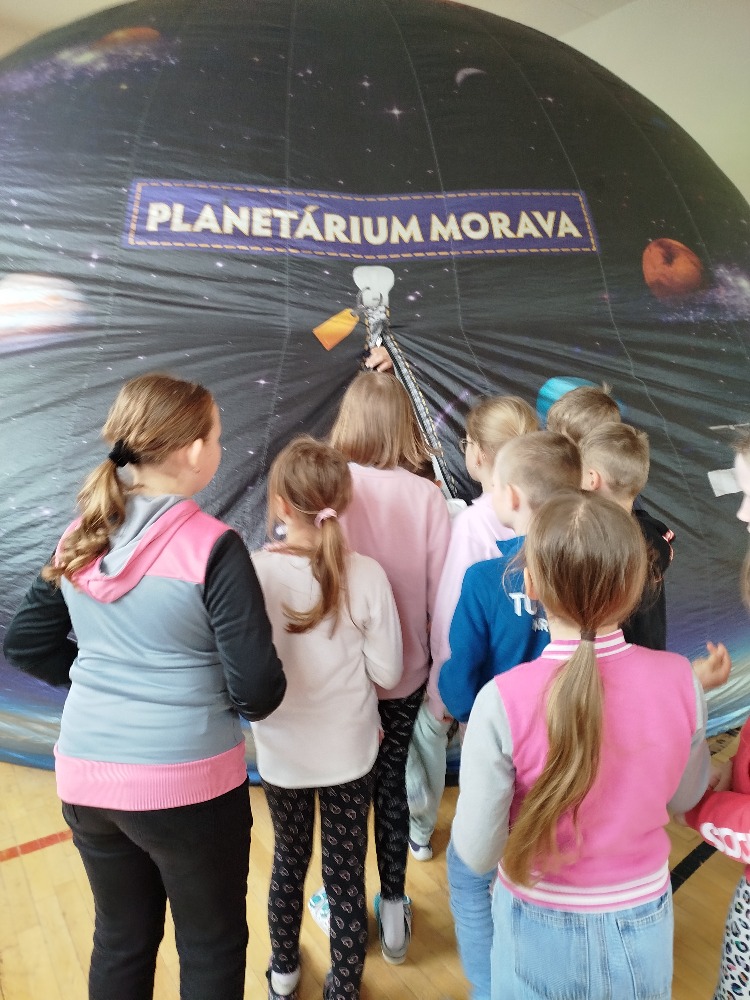 V pátek 17. dubna žáci zažili promítání krátkých filmů ve stanu – planetáriu. Prvňáčci společně se školkou zhlédli film 3-2-1 Start a žáci z ostatních tříd měli promítání s názvem Astronomie pro děti a jako bonus krátké povídání o tom, jak to chodí u kosmonautů – příprava, let a pobyt ve vesmírné stanici.